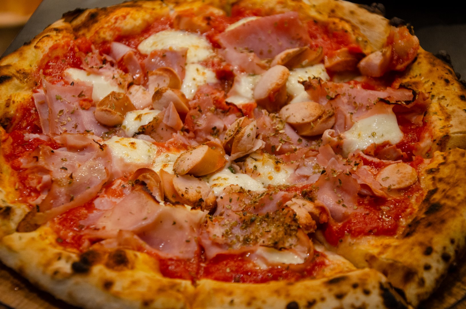 Kid-approved combination of tomato, wurstel, Italian ham, oregano, and mozzarella fior di latte – familiar flavors in authentic Italian style.